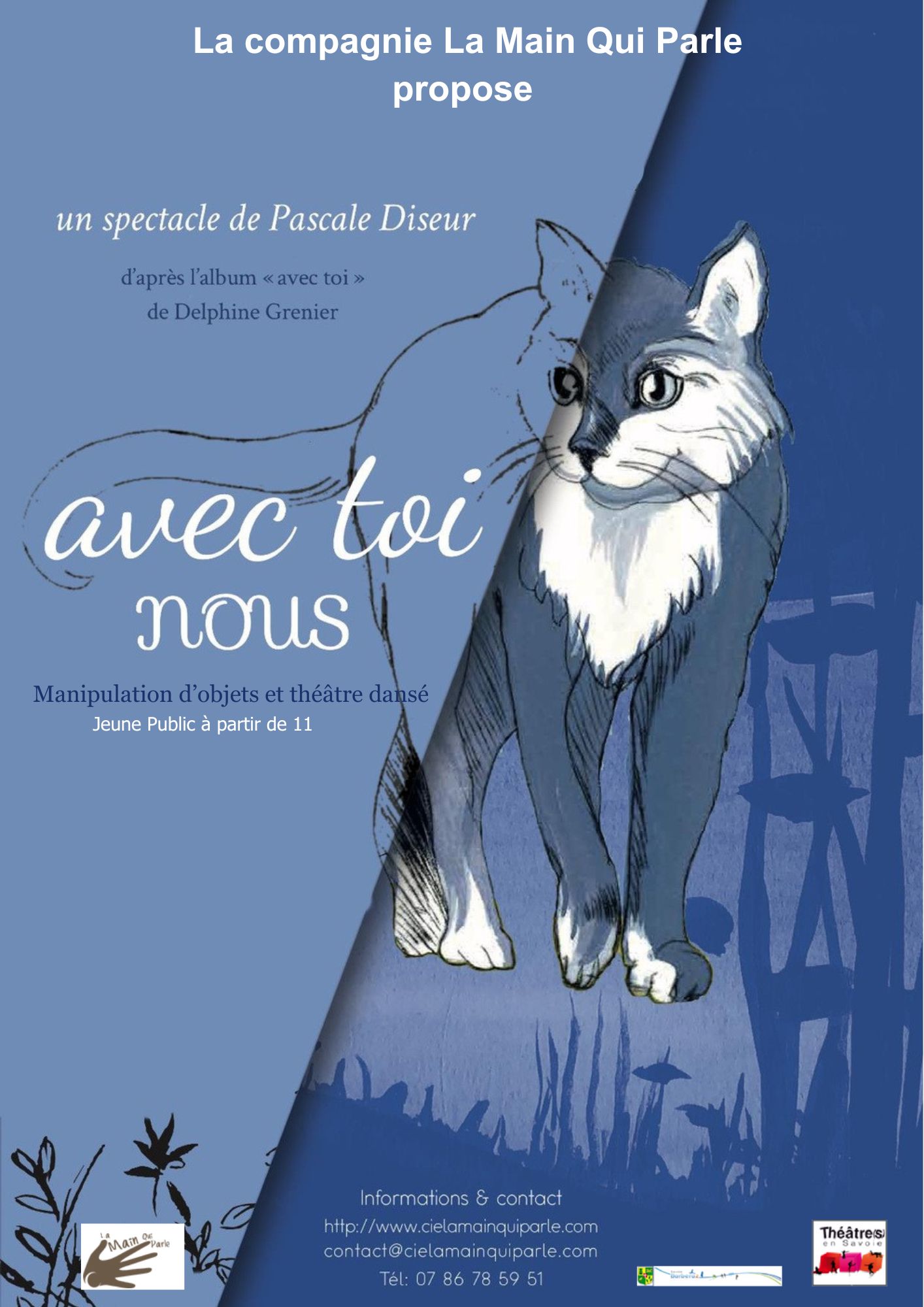 La compagnie aime à donner la parole aux animaux dans ses spectacles jeune public et familiaux et cette création, d’après l’album jeunesse « Avec toi » de Delphine Grenier, n’y déroge pas.